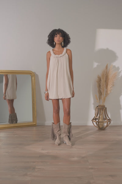 As botas femininas Cindy em camurça trazem o charme boho chic às alturas: a franja que desce ao longo do cano e as pérolas decorativas criam um efeito cénico de grande impacto. O salto de 7 cm e a sola em couro completam um calçado artesanal de luxo.