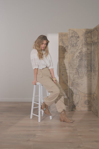 As botins femininos Dora em camurça combinam três elementos distintivos: trabalho a laser, franjas e pérolas, criando um resultado de extraordinária riqueza visual. O salto de 3 cm garante conforto durante todo o dia, enquanto a sola em couro certifica a qualidade.