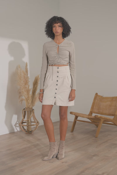 As botins de senhora Gabrielle em camurça são um clássico contemporâneo: linhas limpas, materiais de alta qualidade e um salto de 7 cm que alonga a silhueta com elegância. A sola em couro completa um design essencial, mas nunca banal, Made in Italy.